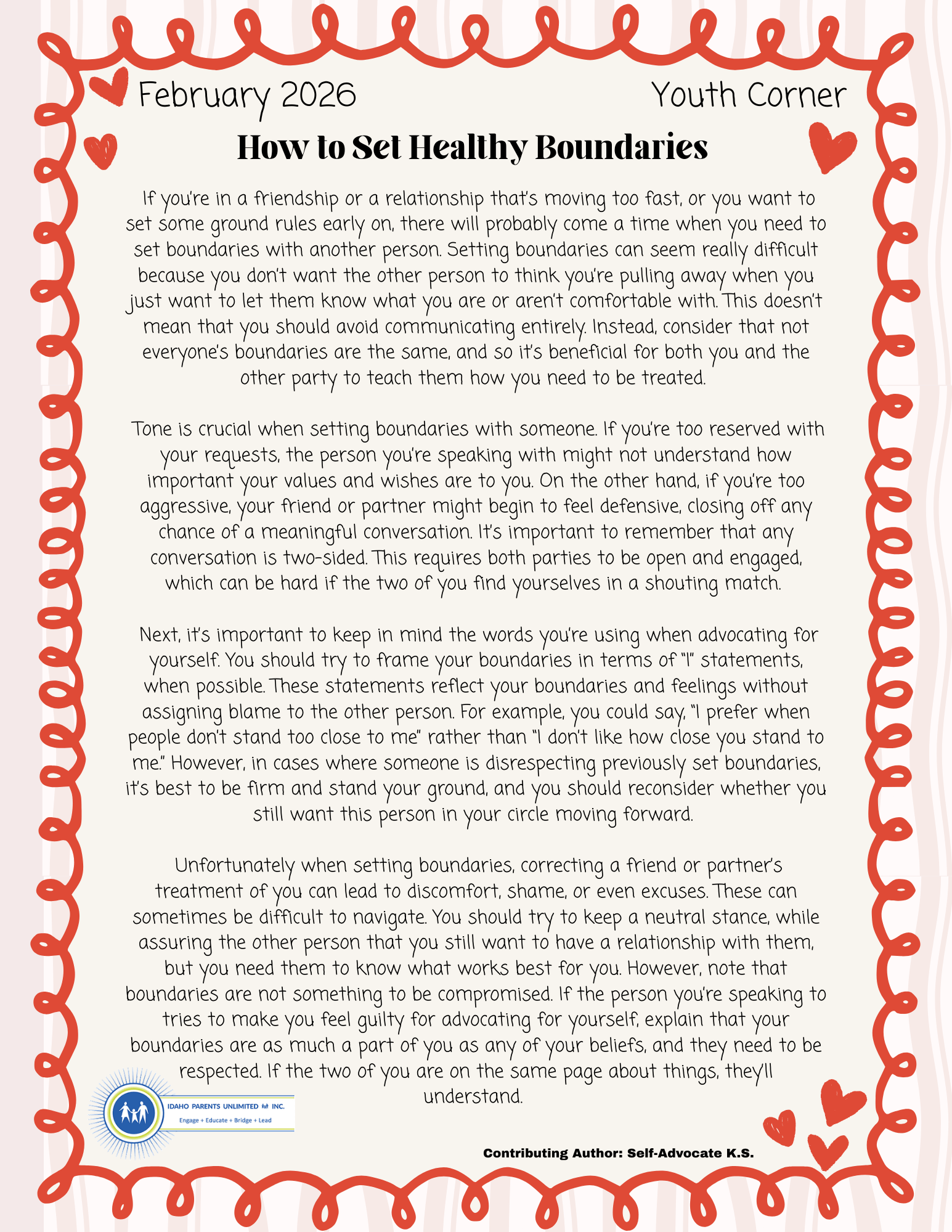 If you’ve struggled with setting boundaries, read February’s Youth Corner to learn more!