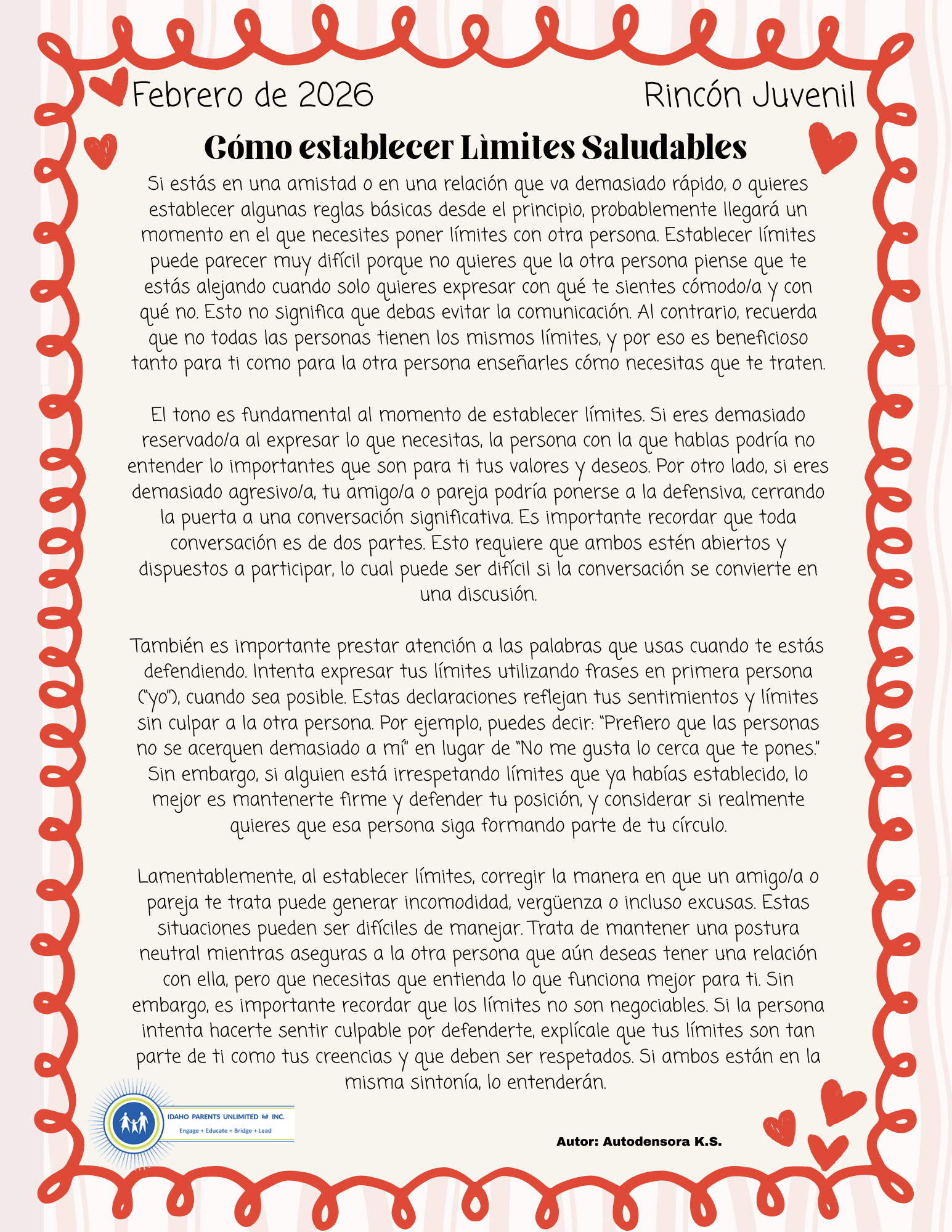 Si has tenido dificultades para establecer límites, ¡lee el Rincón Juvenil de febrero para aprender más!