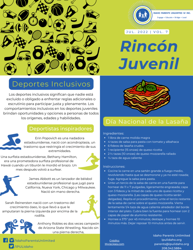 Los deportes inclusivos significan que nadie está excluido o obligado a enfrentar reglas adicionales o escrutinio para participar justa y plenamente. Los comportamientos inclusivos en los deportes juveniles brindan oportunidades y opciones a personas de todos los orígenes, edades y habilidades.