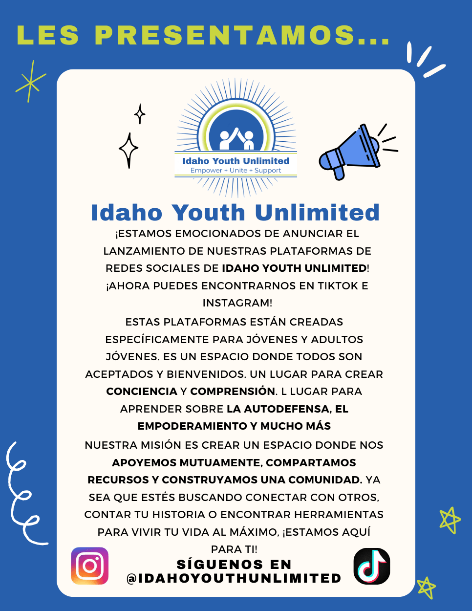 ¡Estamos emocionados de anunciar el lanzamiento de nuestras plataformas de redes sociales de Idaho Youth Unlimited!